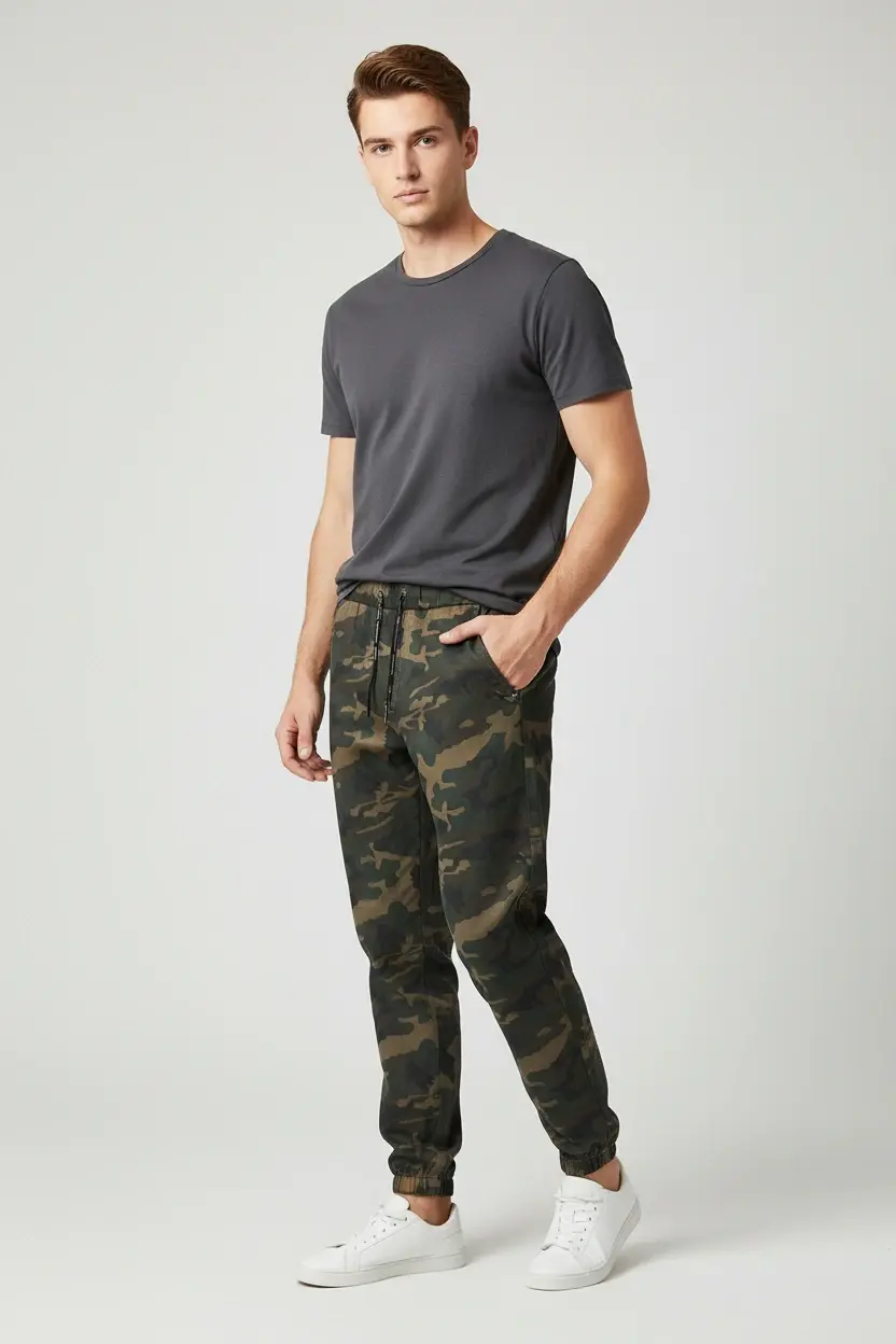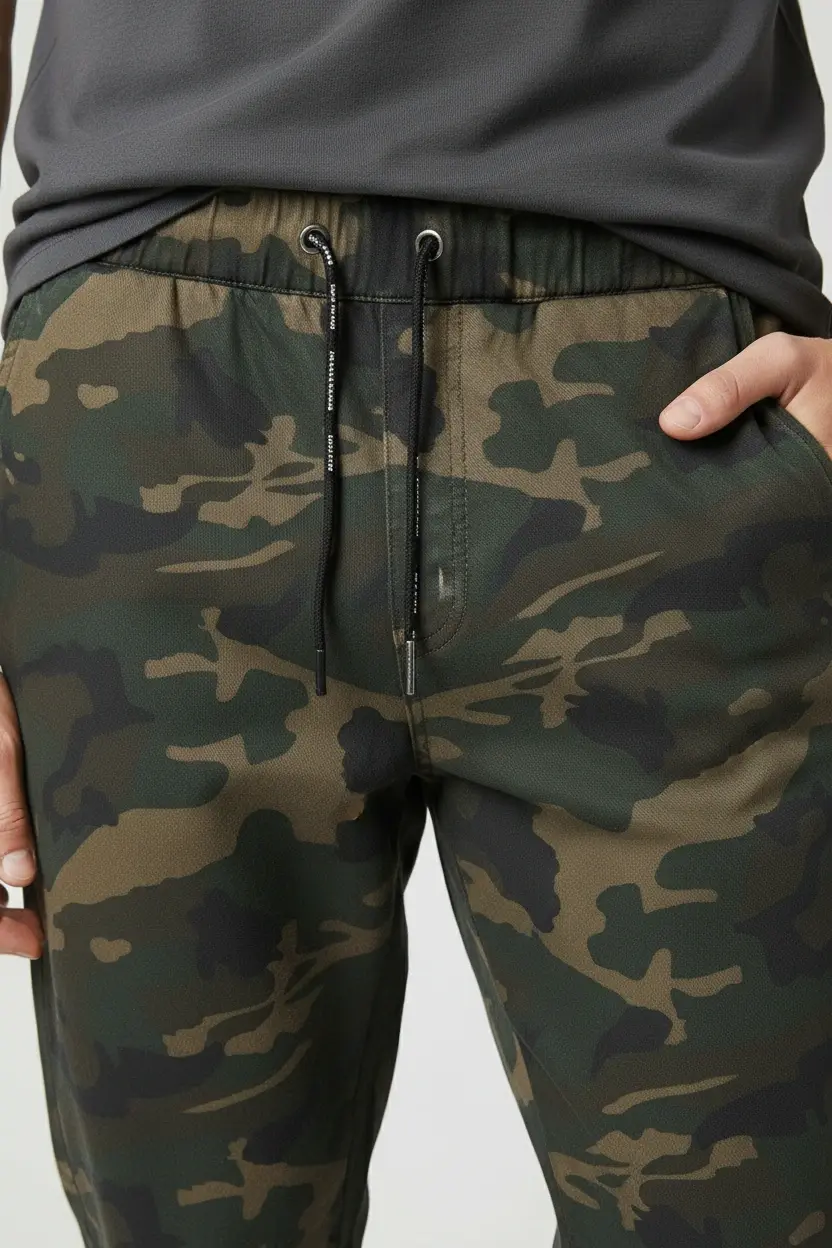 Уникальный дизайн штанов делает этот товар ещё более привлекательным: классическая посадка на талии сочетается с модной расцветкой в стиле камуфляжа. Такие штаны будут актуальны как для повседневных образов, так и для специальных случаев.